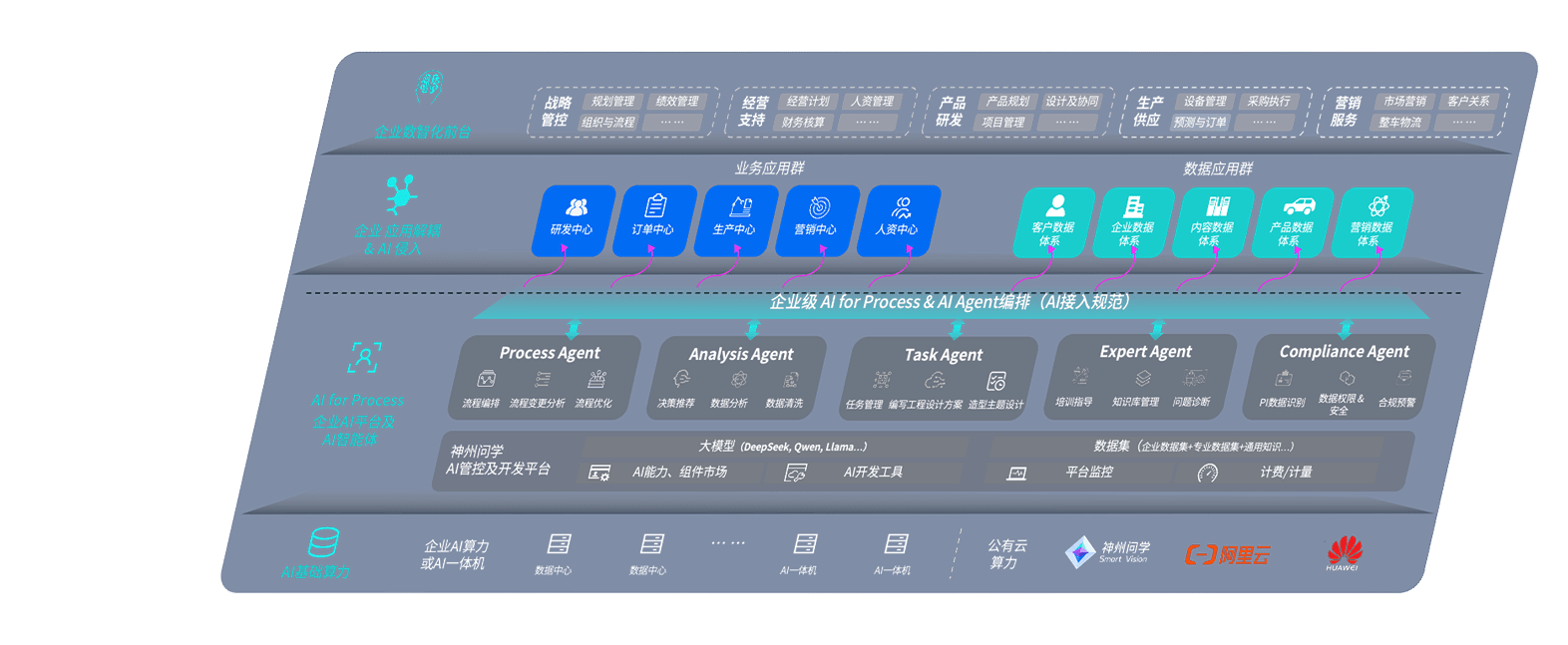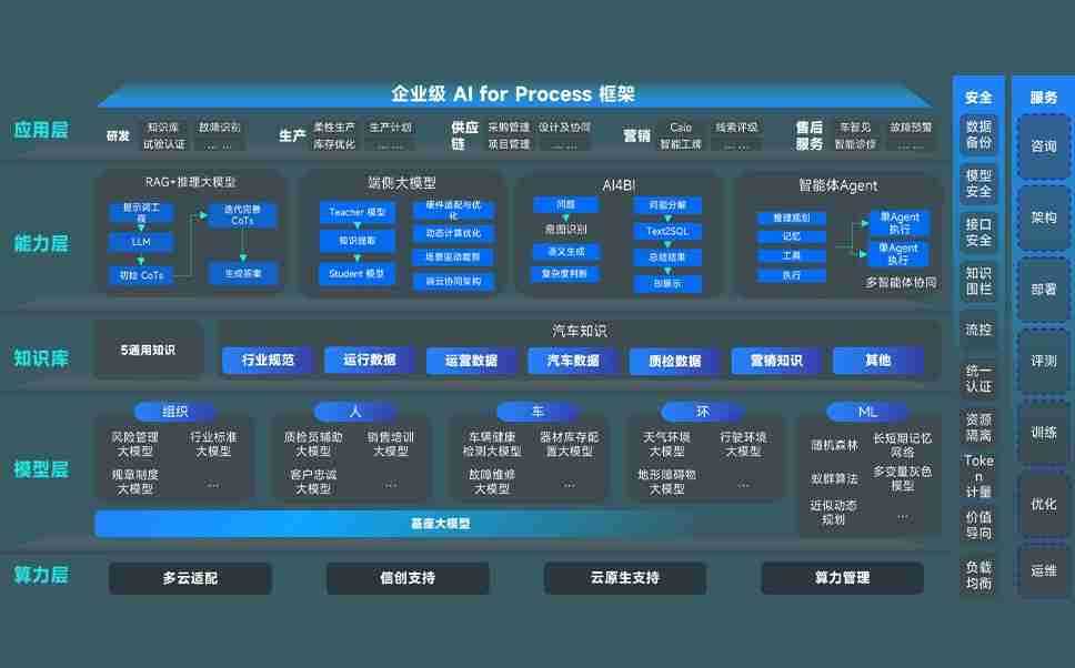 端到端的一站式AI工作空间深度融合了从企业战略规划到日常经营的全流程业务板块,,,定向解决车企内部领域多、、部门多、、、链条长、、、、场景碎片化等难题,,,,支持车企快速构建以AI为核心的生产力写作体系,,实现任务执行与AI能力的无缝集成与交互