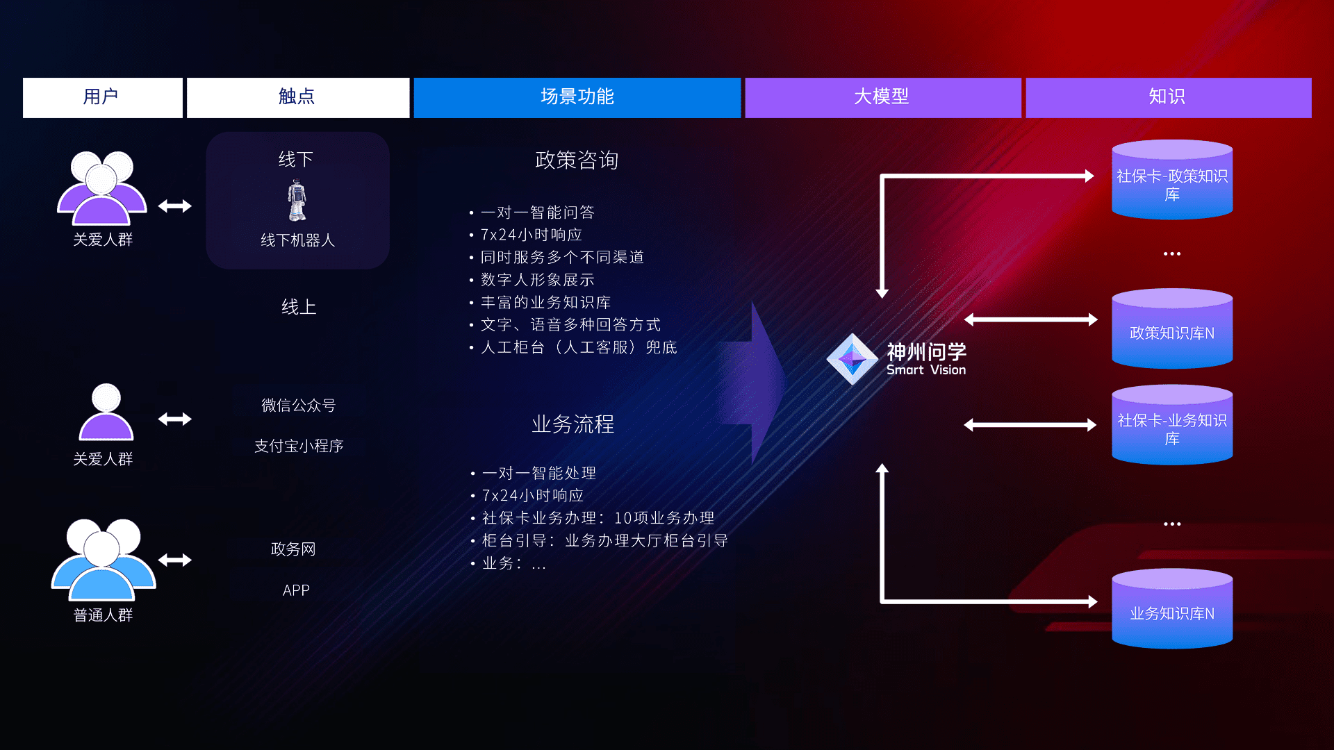 • 线上线下全覆盖:线上提供微信公众号、、支付宝小程序、、政务网、、、app多种渠道,,,,与线下机器人形成完整服务体系。。。