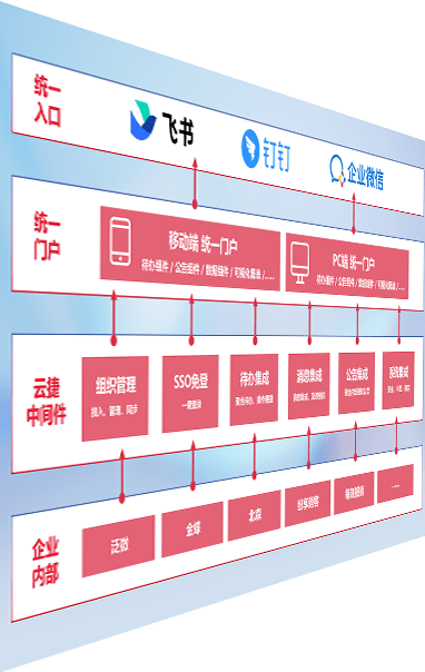 对协作平台提供支持服务,,支持企业应用与协作平台对接,,,,包含组织同步、、、、消息集成、、、、待办集成等。。。。支持目前主流的协作平台:钉钉、、企微和飞书。。。。
